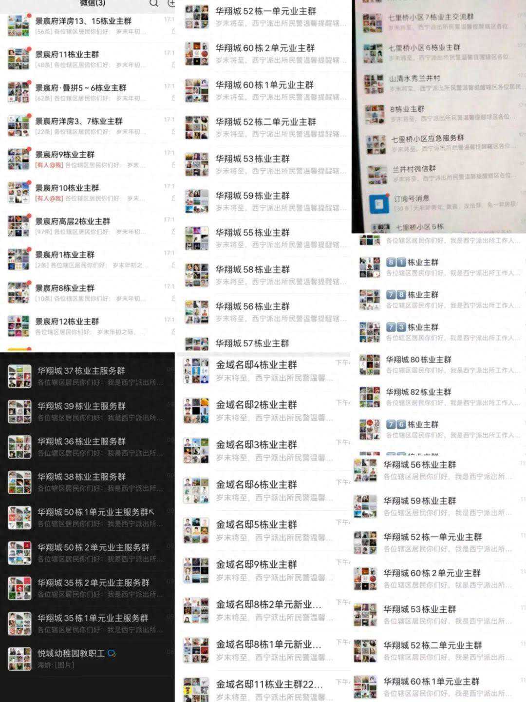 原来,这是遂宁市高新区西宁派出所建立的“警民微信联络群”。像这样由民辅警担任群主的警民治安防控联动微信群共有239个,每个群平均有100余名成员,总人数已达32800余人。
