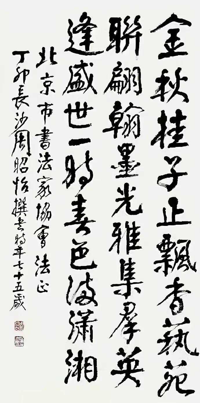 在20世纪的书法家中,从世纪之初的翁同龢,到民国的华世奎及谭延闿、谭泽闿昆仲,再到世纪末叶的周昭怡、翁闿运都是以颜体书法名世的翘楚。进入八十年代,作为当时中国书法家协会各省分会中唯一的女主席,周昭怡与南京的萧娴、哈尔滨的游寿、北京的萧琼被誉为中国四大女书家。从一位大家闺秀到书法大家,周昭怡一生未婚,用尽了她一生的精力、时间,奉献的是书法艺术。
