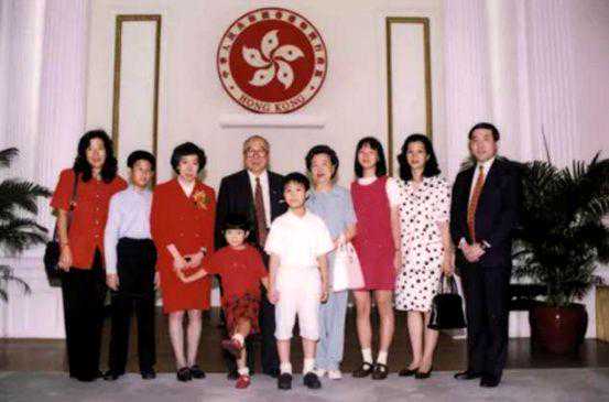 1999年,伍淑清(左3)荣获银紫荆勋章,与父母及部分家人合影