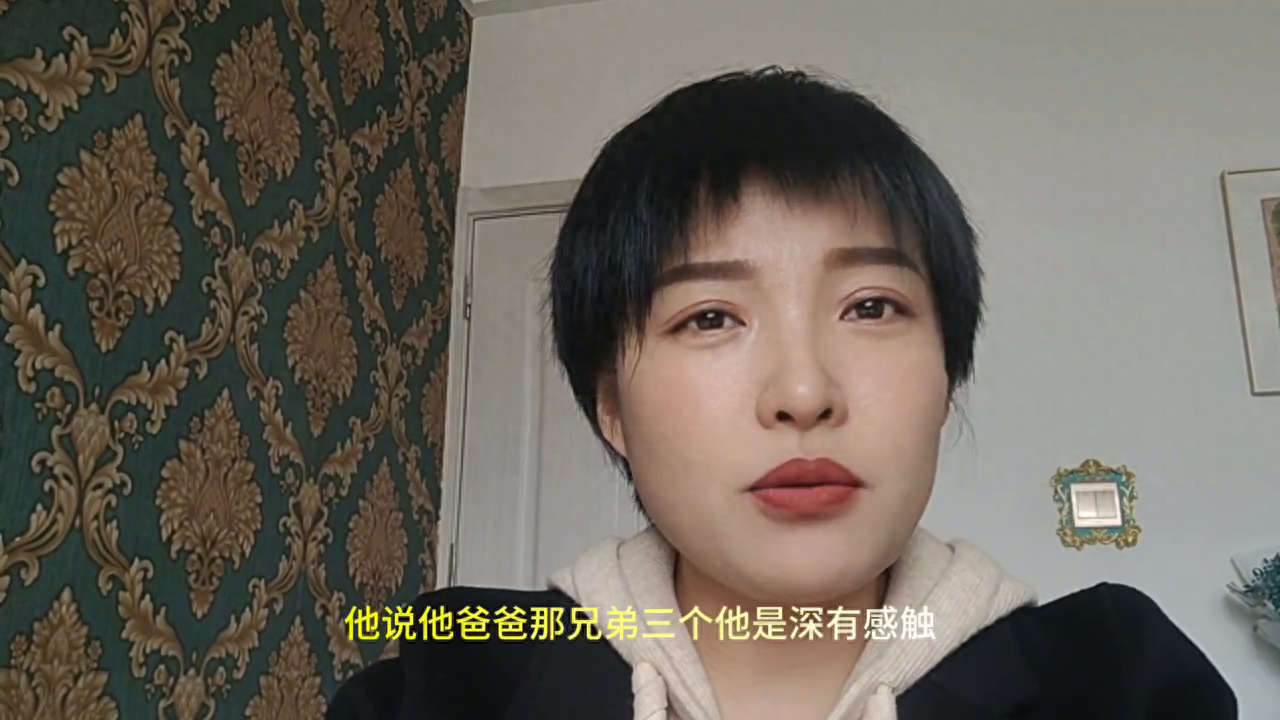 兄弟俩的我不找,父母其中一方有病的我不找,单亲的我不找。他说他爸爸那兄弟三个他是深有感触,他妈生的那个气你都没法想象。如果说父母不通情达理的也不能给他介绍,他说我宁愿单着我也不愿去,让自己的后半生凑合的,委屈的自己,成全的别人。