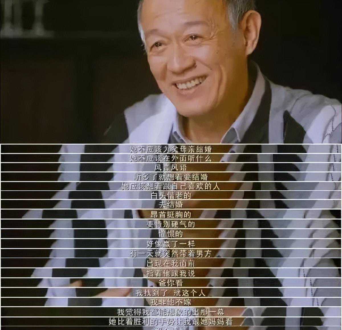 “我希望她幸福,真真正正结一场没有遗憾的婚姻,让我可以把她的手,无怨无悔地放在另外一个男人手里。她不应该为父母结婚,她不应该到外面听到什么风言风语,听多了就想结婚。应该想着跟自己喜欢的人白头偕老的结婚,昂首挺胸的,特别硬气的,憧憬的,好像赢了一样。有一天带着男方,出现在我面前,指着他跟我说“爸,我找到了,就这个人,我非他不嫁”。
