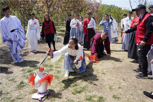现场,才子佳人着汉家衣裳投壶、猜谜、穿针,借盛开的樱花表达绵绵情意,共诉衷肠。伸手需要一瞬间,牵手却要很多年,无论遇见谁,他都是你生命里该出现的人,绝非偶然。花开艳艳,不及她娇媚,几轮互动游戏下来,也成了几桩美事。才子佳人借着微风大胆告白,勇敢追爱,此时此刻,无须留白。