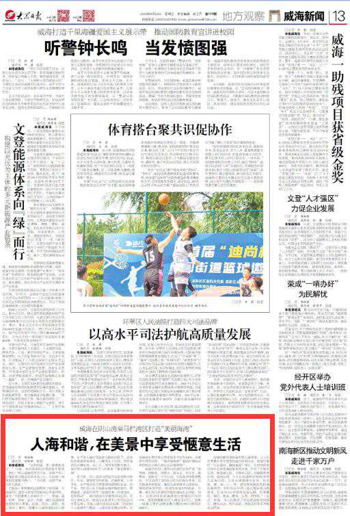9月22日,以《人海和谐,在美景中享受惬意生活》为题,对威海市阴山湾-马栏湾区创建省级“美丽海湾”的工作进行重点报道。
