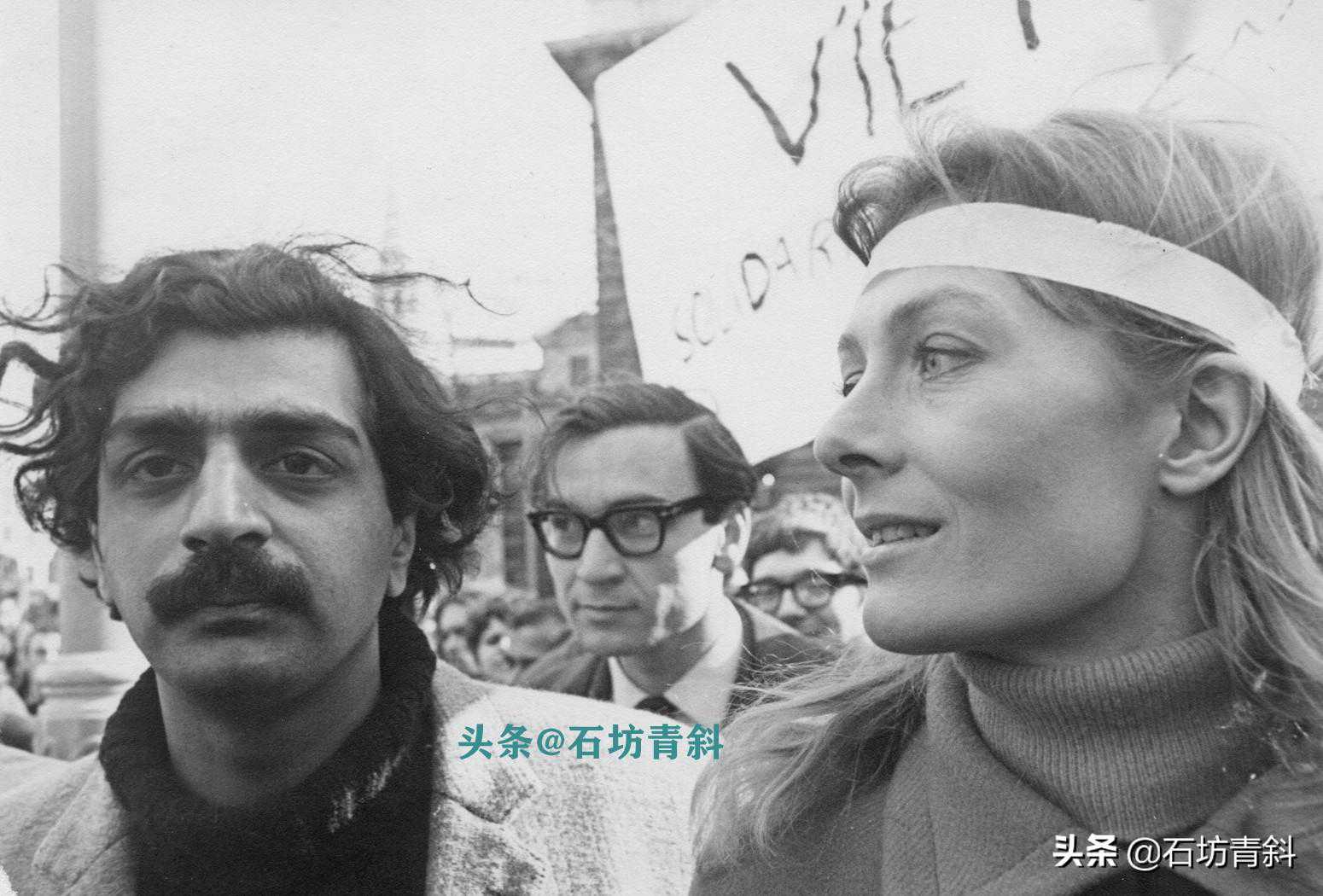 瓦妮莎·雷德格雷夫和巴基斯坦的塔里克·阿里TariqAli在越南特拉法加广场的游行队伍中