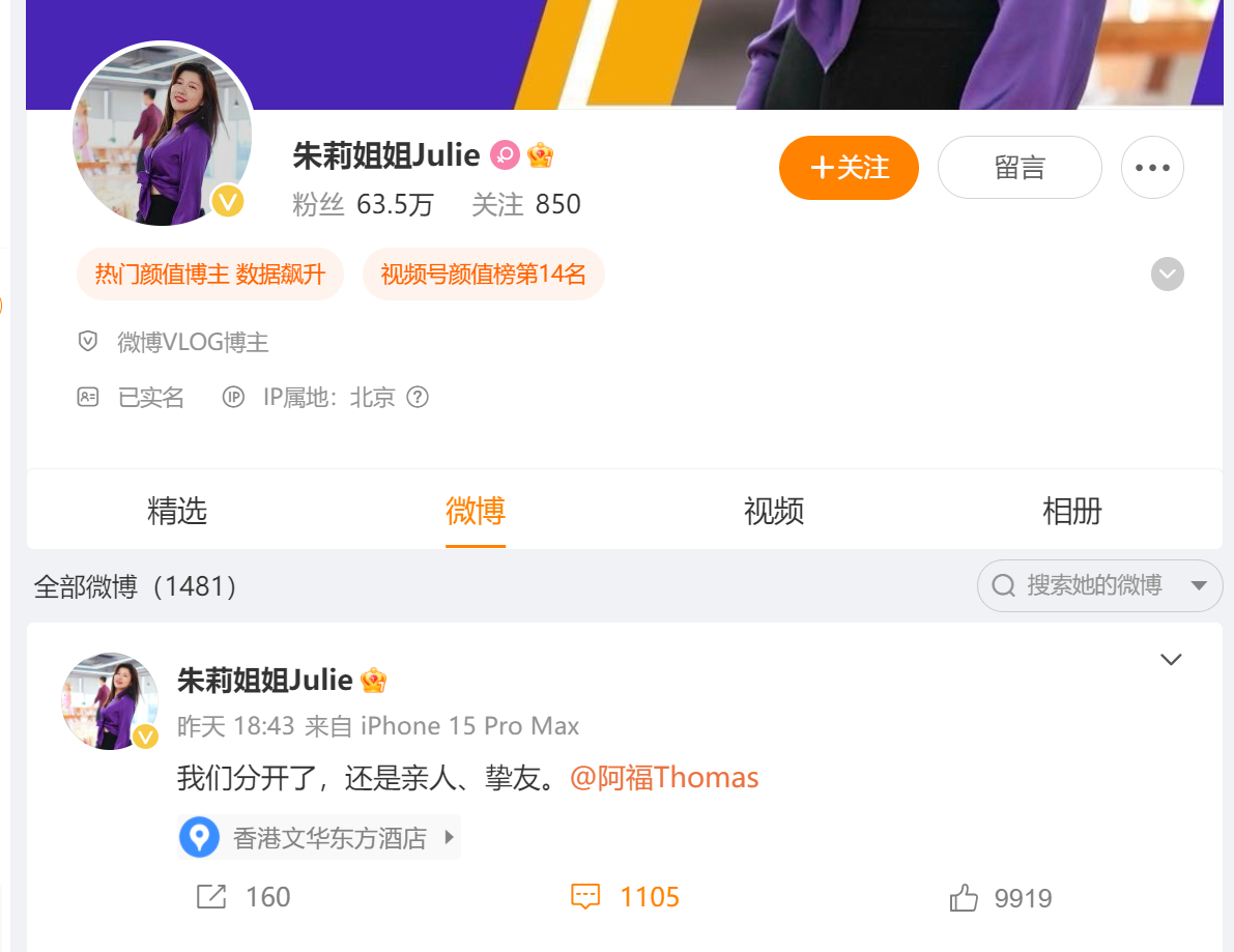 无论是什么样的决定,相信他们自己一定也经过了深思熟虑,也明白自己的决定,既然选择了离婚,那么一定也有自己的原因和想法,毕竟感情的事情,也不是外人能够去干涉和理解的,也希望大家能够给予他们足够的理解和支持。