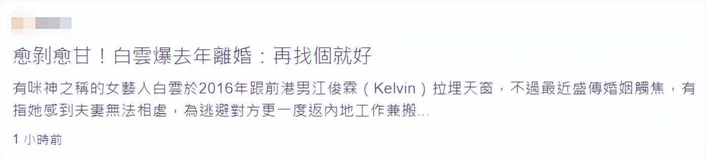 4月5日,港媒爆料称,TVB女星白云与老公已在去年秘密离婚,消息一出,网友们惊讶不已。