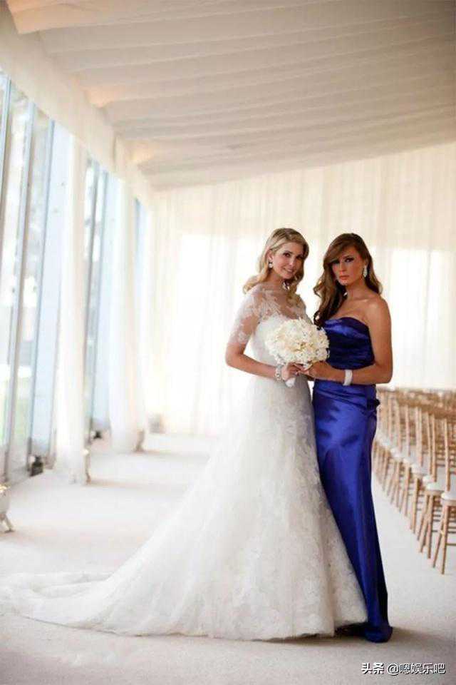 伊万卡的的VeraWang婚纱伊知性柔美,身为超模的她衣品绝对一流,轻柔的三层手工纱加上肩部的透视蕾丝将她的高贵优雅展现的淋淋尽致,由于她的丈夫是犹太人,随之加入犹太教的她特别叮嘱设计师婚纱不要过于裸露,这件婚纱真是端庄优雅。
