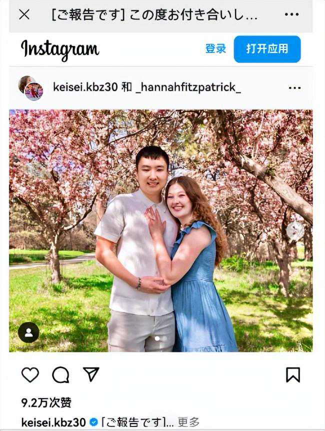 富永启生在社交媒体上先用日语写道,“我决定和这次交往的人订婚了。今后也想两个人互相扶持,度过快乐的每一天。”富永启生接着再用英文说,Hannah和我两人很高兴地宣布订婚,“我们迫不及待地想一起进入我们人生的新阶段,我们非常感觉到目前为止得到的所有支持。”