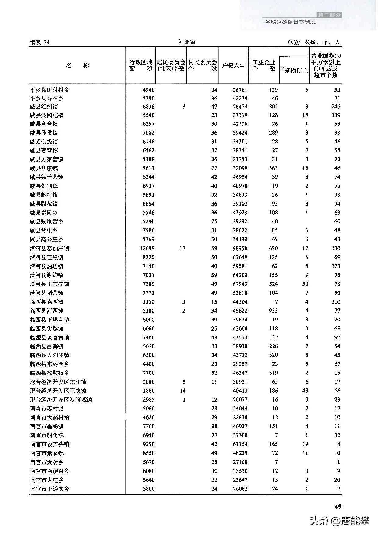 下面是各乡镇工商业情况,人口、厂店数据,可以作为当地开厂开店、工作求职的参考。