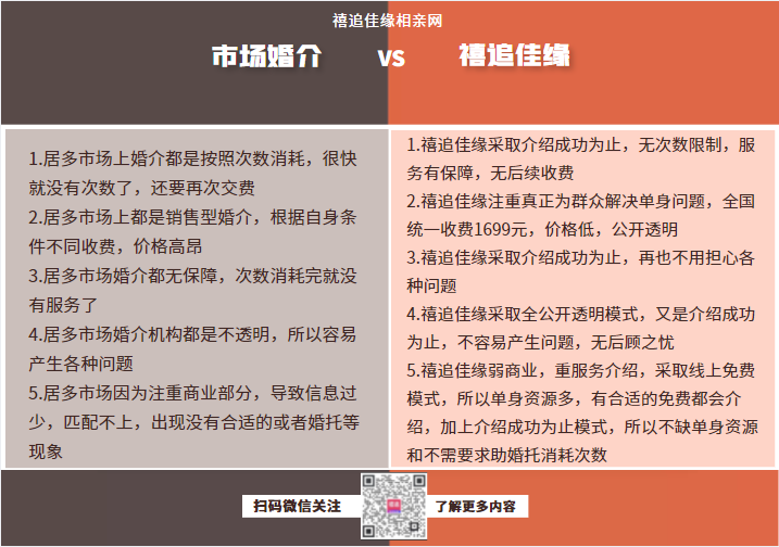 禧追佳缘,开创国内介绍成功为止模式的婚恋品牌,致力于打造一家真正为民服务的民生品牌。