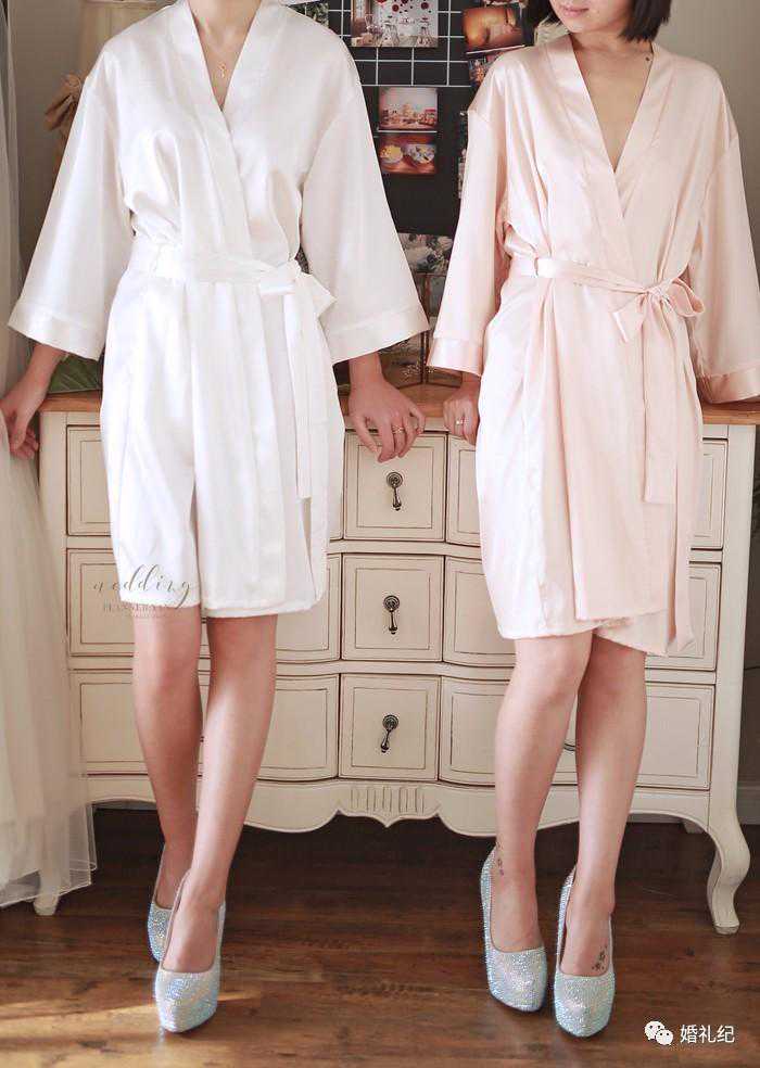 买什么款式呢?纯色晨袍,比如白色、粉色最受欢迎。西方婚俗中新娘当天身上要有somethingold,somethingnew,somethingborrow,somethingblue,蓝色是纯洁忠贞的代表,所以蓝色也是热门色。