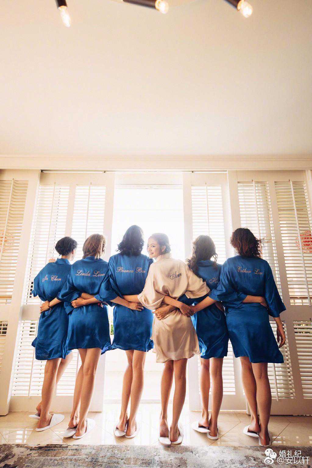 背后特别印上“Bride”的新娘专属晨袍也有,小细节突出当天婚礼主角。