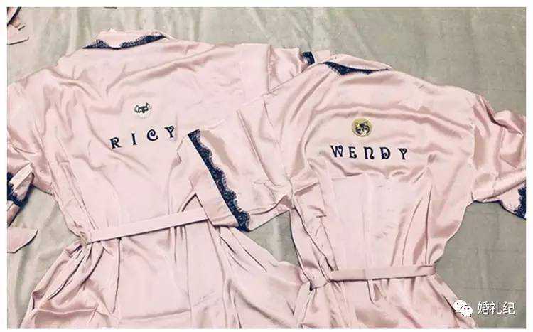 晨袍背后有新娘伴娘英文字样BRIDE/BRIDEMAID的,买的渠道不多。如果要加上新人和伴娘的名字,还要另外出定制费。但是纯晨袍很多啊!