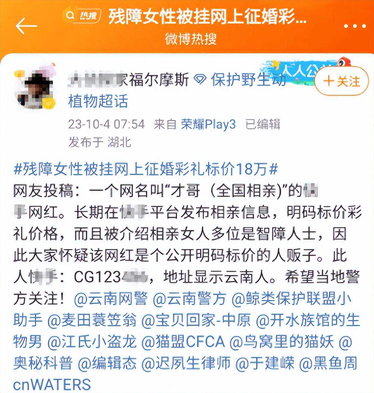 针对此事,弥勒市已成立了由公安、网信、民政、妇联等多个部门组成的工作专班。