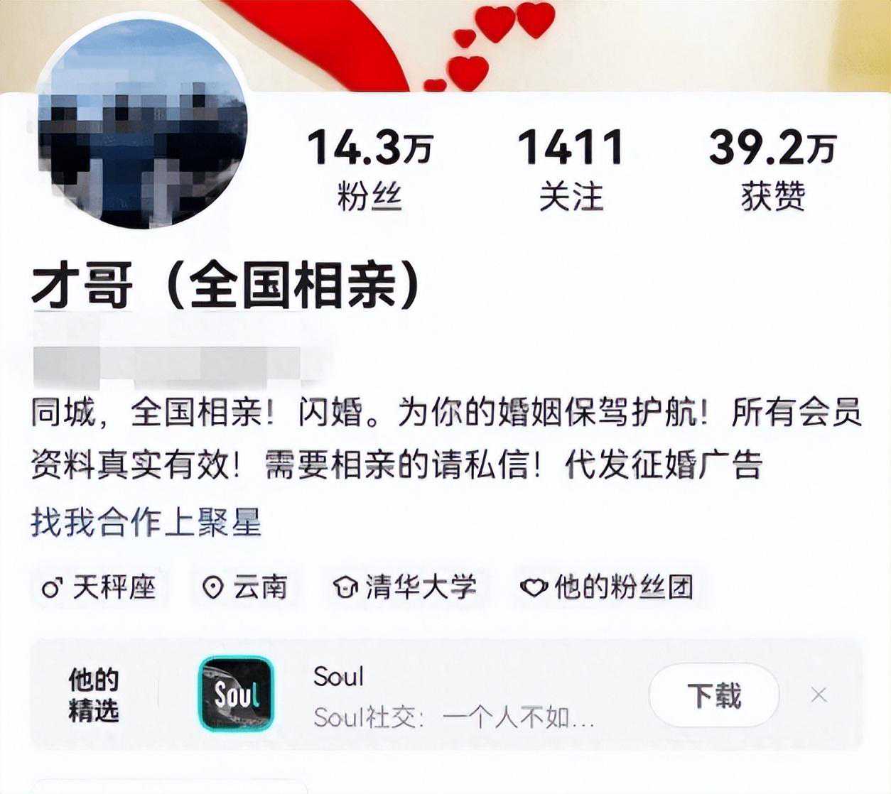 据报道,该主播自称是一家正规婚介机构,在接受采访时声称有需求的人可以到他们线下的婚介所相亲。