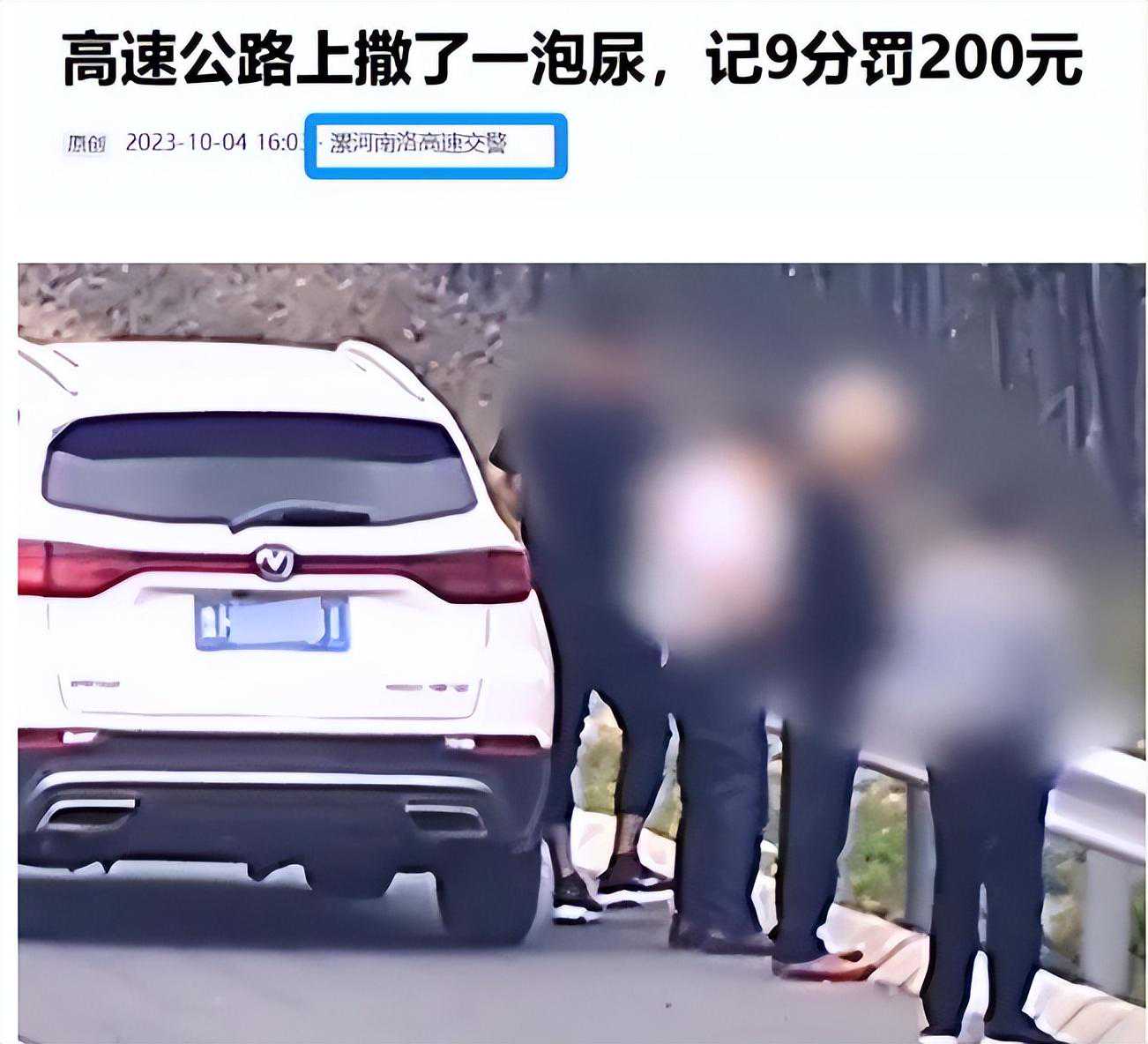 针对在高速上小解的问题,官方已经做出了处理结果。此前,交警部门已经通过发文表示,对于在高速上小解的行为,将处以记9分罚款200元的处罚。