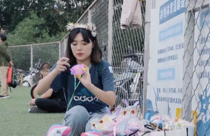 离开学校后,为了自立,她拿着玩具摆地摊,别人问价,她就举个牌子,把自己想说的写在上面。