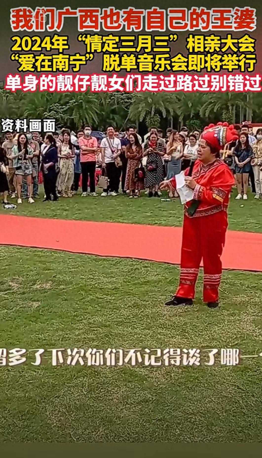 “广西三月三·八桂嘉年华”新闻发布会上,南宁市委常委、副市长郭伟介绍,今年“广西三月三”,南宁市将举办“情定三月三”相亲大会、集体婚礼、“爱在南宁”脱单音乐会,旨在为有意愿相识的青年男女提供交流平台,传递正确的人生观、价值观和婚恋幸福观。相亲大会和集体婚礼将免费举办,并设置各种互动相亲游戏,参与者将获得精美纪念品,从而增加活动的仪式感和幸福感。
