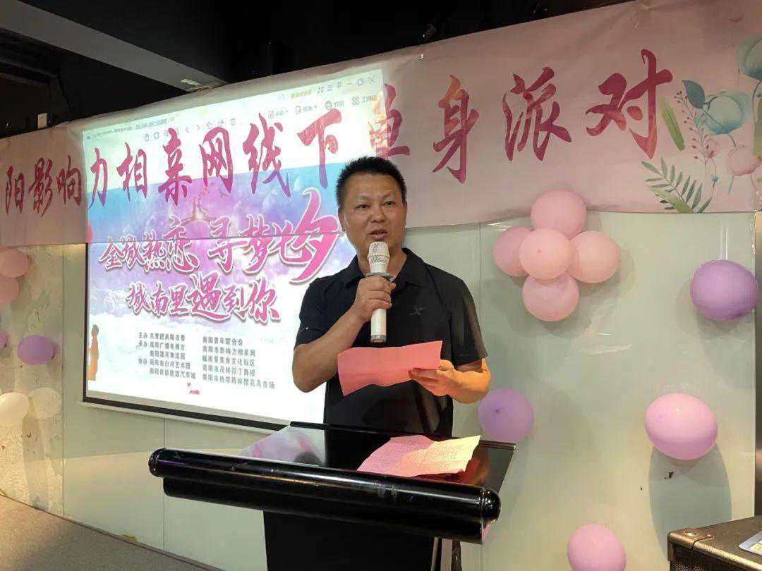 8月20日下午,共青团南阳市委宣传部部长张豇菲为活动致辞,他说:随着大家工作节奏的加快,人与人之间交流、情感沟通的时间受到挤压,适龄青年婚恋、择偶难的问题日益突出。团市委把青年人的婚恋问题想在心上,抓在手里,值此七夕佳节之际,团市委联合南阳影响力相亲网等开展一系列青年联谊交友活动,今天这场联谊活动为广大青年朋友提供扩大交友范围、敞开心扉、交流情感,搭建展示自我、缔结友谊、寻觅知音的平台和机会,希望青年朋友们能在工作之余缔结友情、收获幸福,继续在南阳这方热土上扎根深耕,凝心聚力,逐梦前行,为我市经济社会高质量发展贡献青春正能量。在这里共同寻找着属于自己的有缘人。