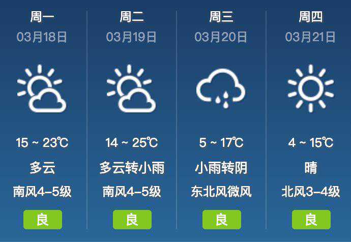今明两日,泉城将迎接今年最高气温,19日最高气温将达到25℃,春意越发明显。20-23日将有冷空气影响我市,这也是近期最为明显的一次冷空气活动,这股冷空气将终结这一段时间来,济南明显偏高的气温格局,最高气温累积降幅超过10℃,并且伴有小雨天气,预计白天气温将重回12℃左右。菌提醒各位:及时调整衣物,谨防感冒。