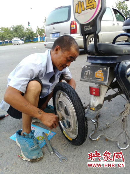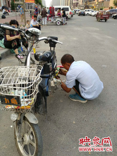 走近后看到与照片上相符的一个人正在专注的修理电动车。通过谈话,记者发现,安阳东区光头强是个风趣幽默的专业电动车维修工,今年36岁,至今未婚。谈到自己单身一人的原因时,强哥一声叹息,说出了正值谈婚论嫁的年纪,却在外地做生意,没有遇到让他心动的伴侣,前几年回到家乡安阳,并且在金柏湾买了房子,自己会修车手艺,现在衣食无忧,随着年龄的增大,才感觉自己身边确实需要有个伴侣,希望能尽快找到有缘人,共同搭理自己的好日子。聊天中,强哥也没停下手里的活儿,他说;修车能快就快,怕顾客等的着急。在强哥的工具车上,微信支付的二维码随风飘动,强哥说这叫与时俱进,得跟得上现在的消费模式。