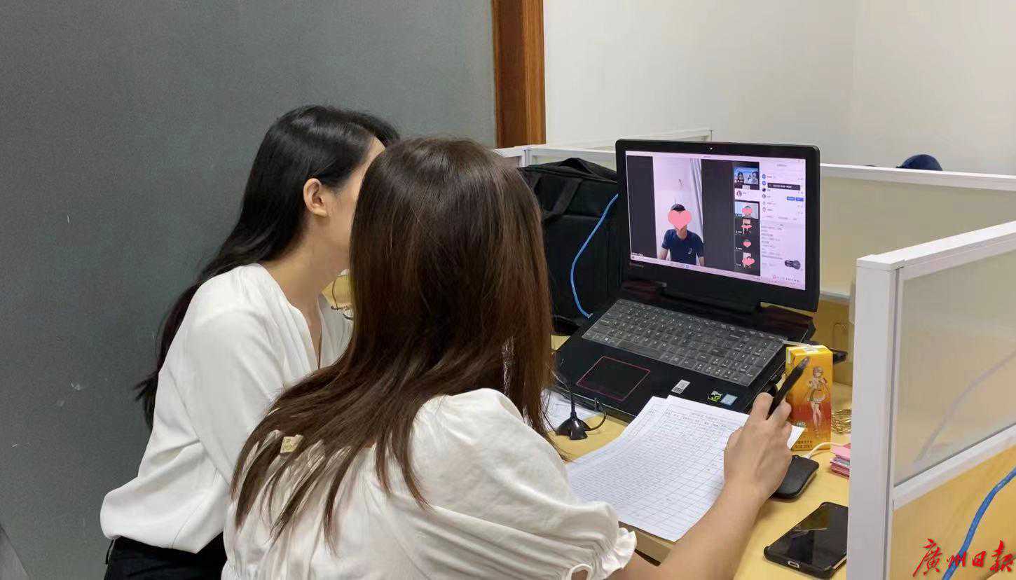 广州市职工红娘协会工作人员牛晓斐和小余正在主持线上职工交友联谊活动。