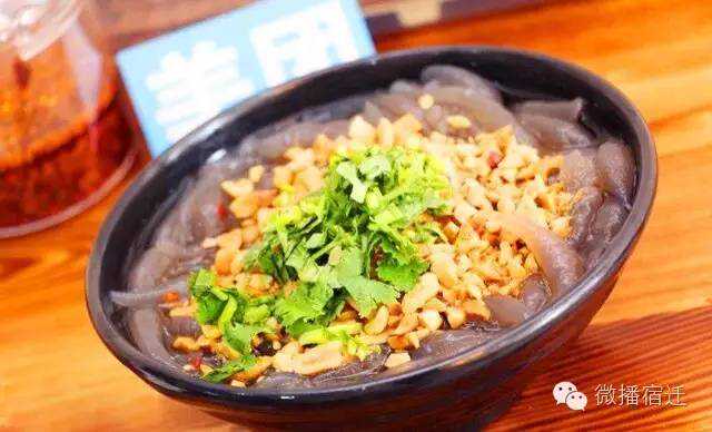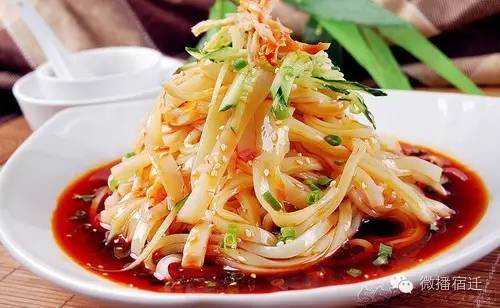 夏天吃擀面皮很常见,可是咱们宿迁人一年四季都吃擀面皮,俗话说的好“冬天吃擀面皮你能保暖,夏天吃你能消署,春天吃你能解乏,秋天吃你能去湿”,宿迁的擀面皮,Q弹可口,汤汁鲜美,吃了就根本停不下来。