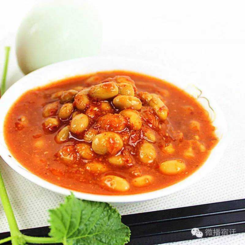 酱豆是咱们宿迁人喜欢做的一种腌制发酵菜。属于调味品,开胃建食,有气香,味咸,微麻微辣,是宿迁有名的下饭菜。除此之外,酱豆炒鸡蛋还是宿迁有名的“早饭”,一盘酱豆炒鸡蛋,两块煎饼,让你活力一整天。