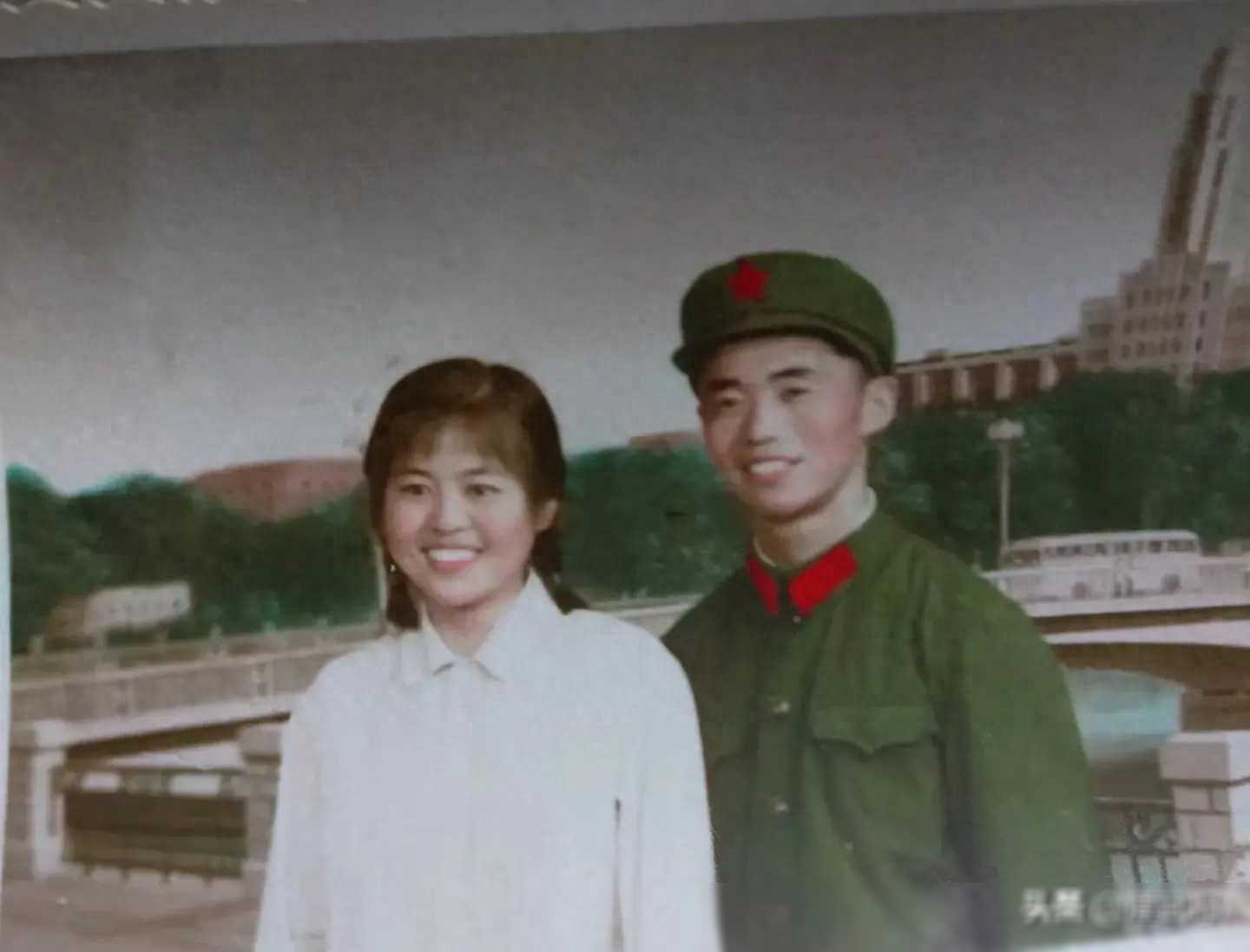 照片上是一个简陋的小屋,屋子里摆满了各种旧旧的家具,墙上挂着一张简陋的布艺画。在屋子的中央,一个穿着军装的张立宇和一个素衣女子相拥而坐,他们的脸上写满了幸福和满足。