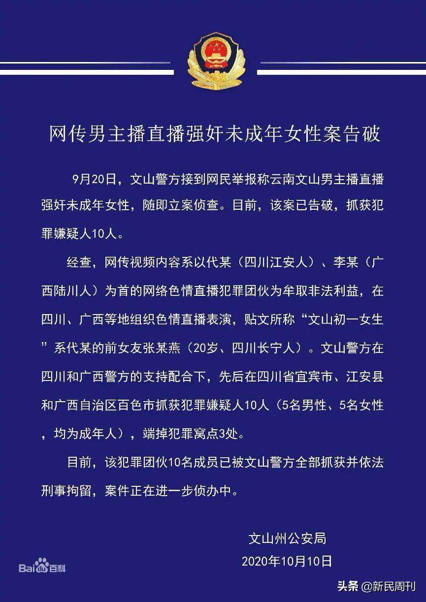 另外,今年9月云南文山的“直播性侵未成年人”案件,也让公众看到某些出格的直播行为不仅道德上被谴责,而且已经越过法律界限。9月20日,文山警方接到网民举报称云南省文山县男主播直播强奸未成年女性,随即立案侦查。