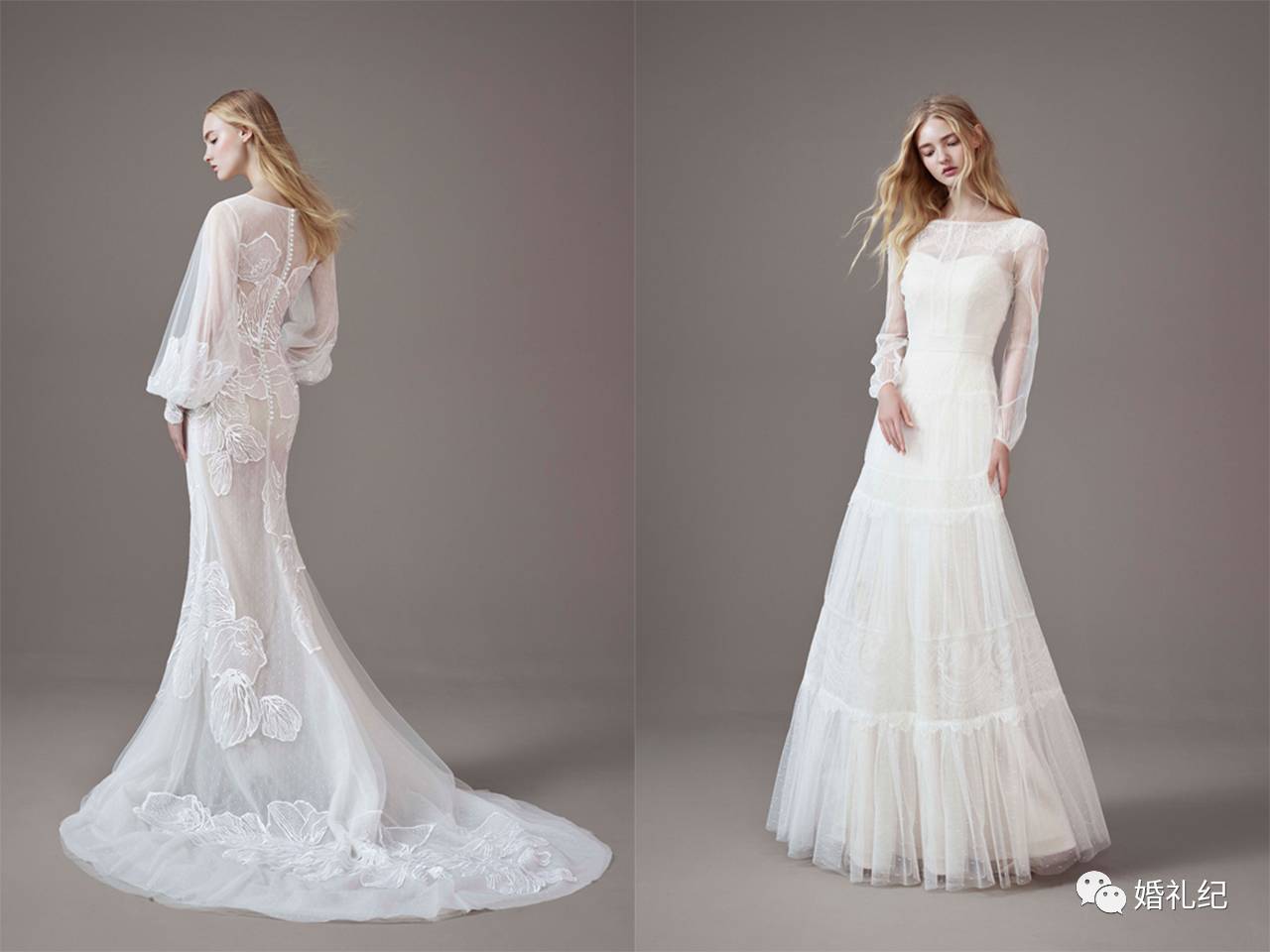 灯笼袖的这件,暗暗觉得最适合森系户外婚礼了,特别是春秋季节。