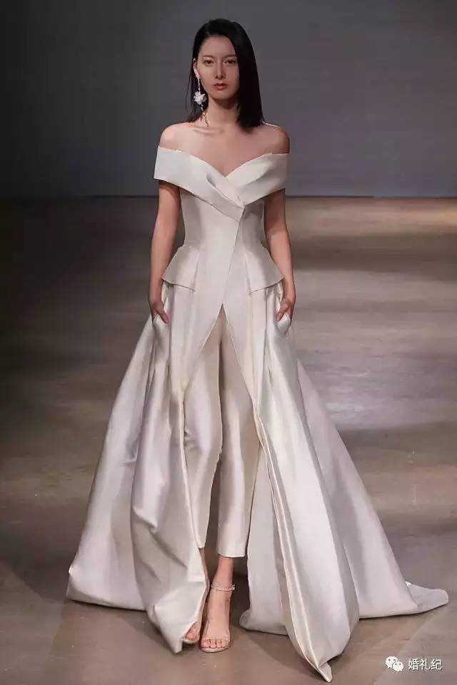 这个系列里,最喜欢的就是这款裤装双层婚纱,短发利落的妹子,一定无法抗拒。