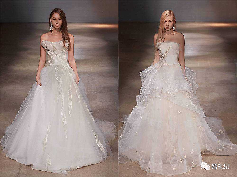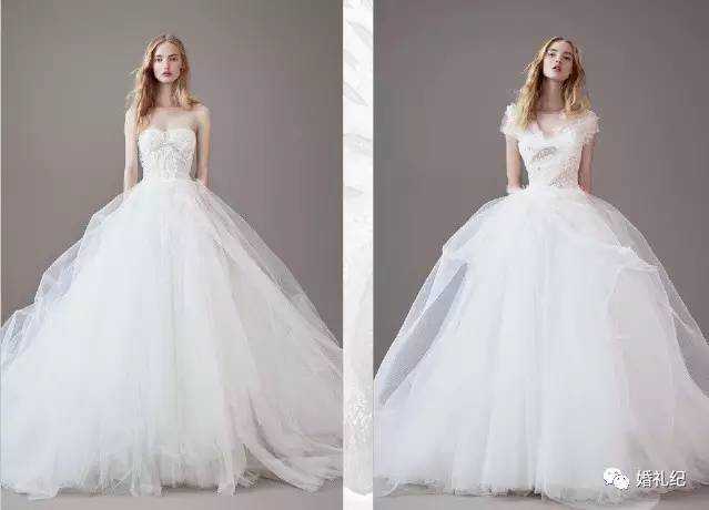 婚纱的裙摆,很少做大拖尾设计,她们大多轻盈、活泼,带着仙气。