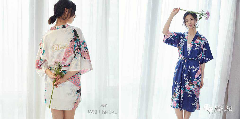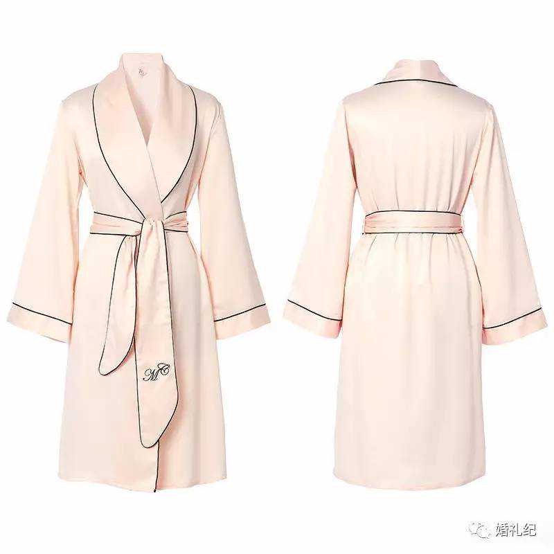 买什么款式呢?纯色晨袍,比如白色、粉色最受欢迎。西方婚俗中新娘当天身上要有somethingold,somethingnew,somethingborrow,somethingblue,蓝色是纯洁忠贞的代表,所以蓝色也是热门色。
