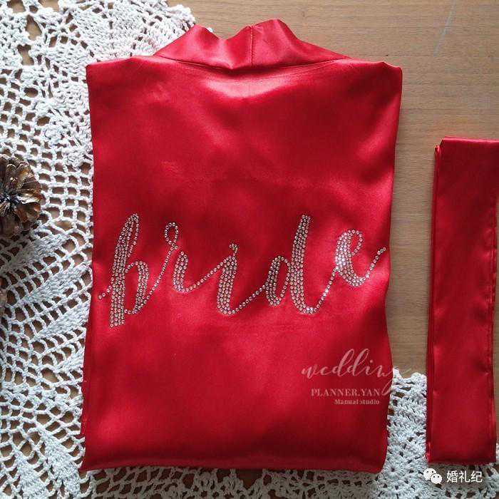 面料除非定制要求真丝,基本都是仿真丝,但大多新娘评价手感很舒服。价格,烫钻最便宜,刺绣稍贵。如果你想为自己和伴娘们定制一套晨袍,加上你们的名字,作为婚礼小礼物的话,他家也能定制。