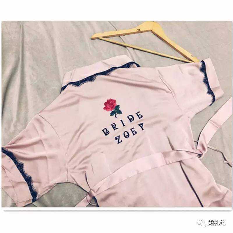 晨袍背后有新娘伴娘英文字样BRIDE/BRIDEMAID的,买的渠道不多。如果要加上新人和伴娘的名字,还要另外出定制费。但是纯晨袍很多啊!