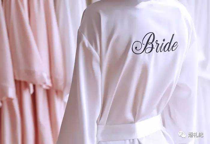 背后特别印上“Bride”的新娘专属晨袍也有,小细节突出当天婚礼主角。