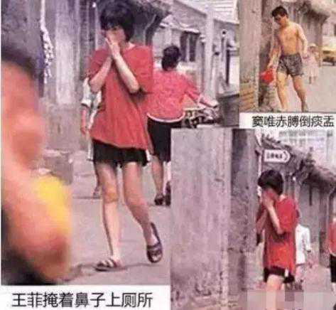 终于那个小院走出一个穿着红色T恤的女人头发蓬松,睡眼朦胧,夹着拖鞋像公共厕所走去,还用双手捂住鼻子,那就是王菲。