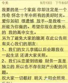 半小时后李亚鹏回应:你注定是个传奇,放手是我唯一能为你做的,希望你现在是快乐的,我的高中女生。