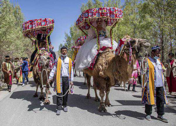 自婚礼活动在景区开展以来,吸引了岳普湖县及周边县市的广大青年积极报名、预约举办婚礼。据统计,自4月18日至24日,在达瓦昆共开展7场次,为9对农牧民青年举行婚礼,共接待2500人多名宾客和游客参加婚礼。由于是疫情防控控制人数参加,在平时会超过5000人次。据悉:5月1日当天将为16对新人举办盛大的集体婚礼。