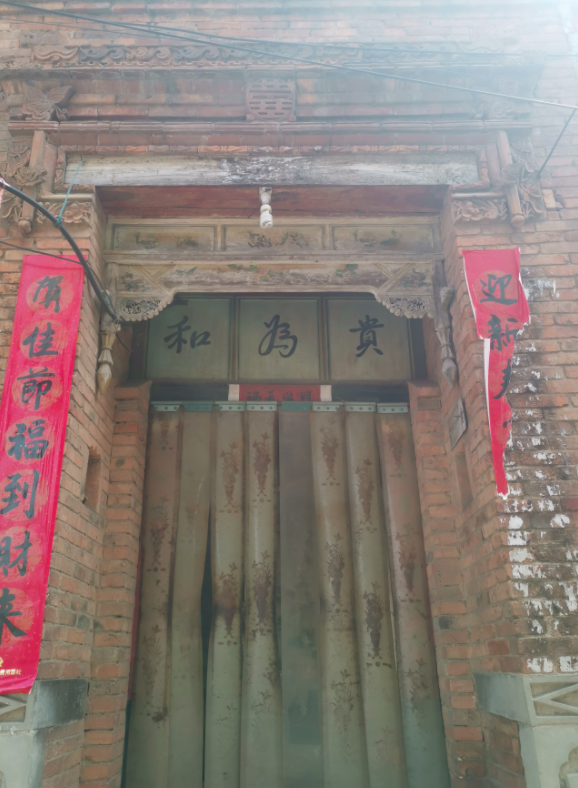 居民的房子建在山上,用岩石垒成的高墙在村子里随处可见,每家每户几乎都设立着门头,上面写着“家和万事兴”、“和为善”、“耕读传家”这样的大字。