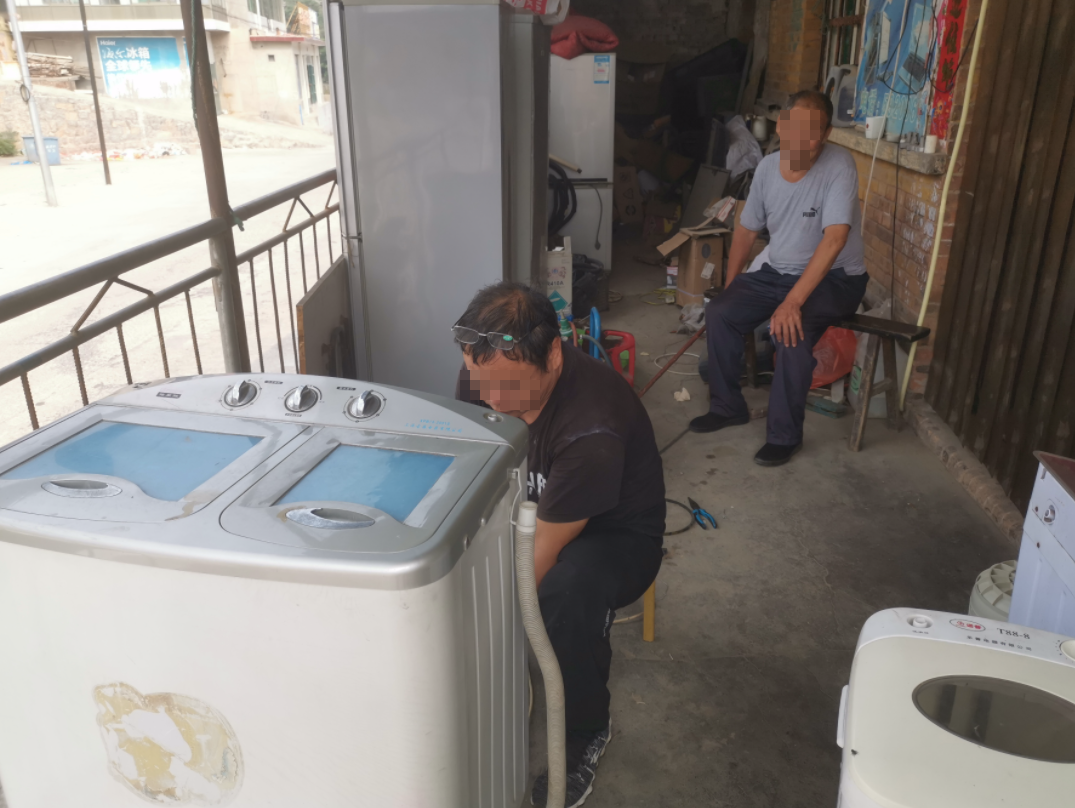 如今,这里的人口数已经大不如前,店里的生意少了很多,来店里的大多数都是老年人。在记者呆在店里的几个小时里,陈玉良修了一台因生锈导致滚筒不转的洗衣机,一个断了线的电瓶,一个开关按不动的风扇,和一个没有声音的手机。不过他都没有收钱。