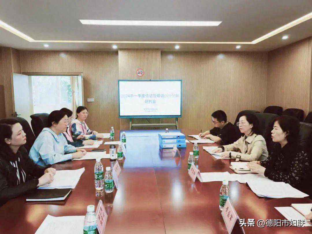 为深入贯彻落实习近平法治思想,积极践行“枫桥经验”,助力平安德阳建设,充分发挥妇联组织在基层社会治理中的重要作用,切实加大对“德阳市婚姻家庭纠纷人民调解委员会、德阳市“慧.爱”“法言她语”家事纠纷调解室、12338妇女维权公益热线、德阳市妇女儿童维权中心、德阳市婚姻家庭危机干预调解中心(以下简称'一会两室一热线两中心')”的管理力度,充分发挥“一会两室一热线两中心”的作用,4月1日下午,2024年一季度信访及婚调纠纷化解研判会在德阳市妇女儿童服务中心214会议室召开。市妇联党组成员、副主席戴泽春出席并讲话。