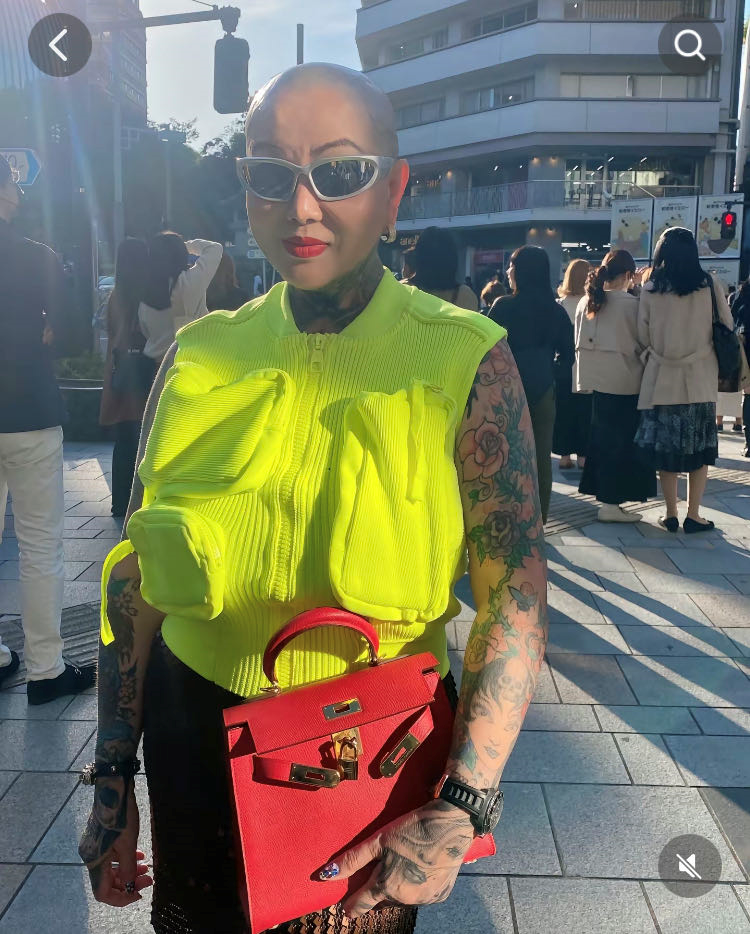 剃成光头后,冯萍又去纹了身,全身上下画满了图案。这在一般人看来简直无法接受,但冯萍对此却是非常喜欢,她觉得纹身纹出了自己的风格。