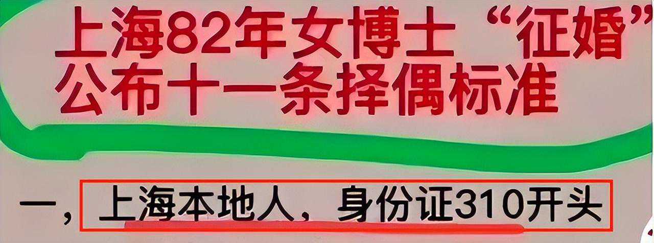 在父母的一再催促下,她拟了自己对择偶的11个标准,其中第一条就是上海本地人,身份证310开头。
