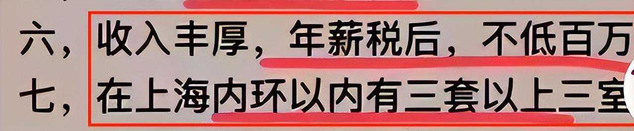 第六条又是硬性要求,男子要税后收入年薪不低于百万。