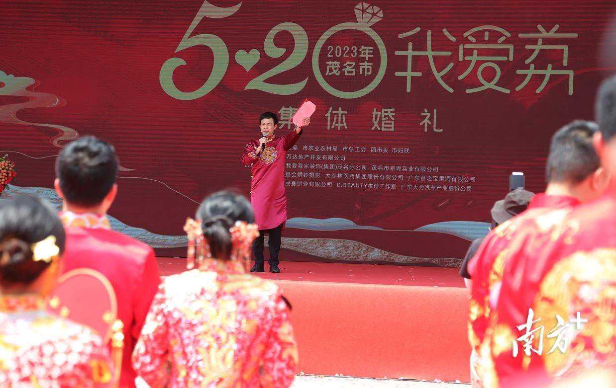 茂名市政协副主席、市民政局局长冯波说,值此荔红飘香的美好时节,举办“520·我爱荔”集体婚礼,希望新人们走上幸福生活。茂名市民政局党组书记、一级调研员郑冬娅为新人们主持证婚仪式,她祝福新人相敬如宾,仁爱孝悌,做文明新风尚的践行者、社会主义核心价值的守护者。