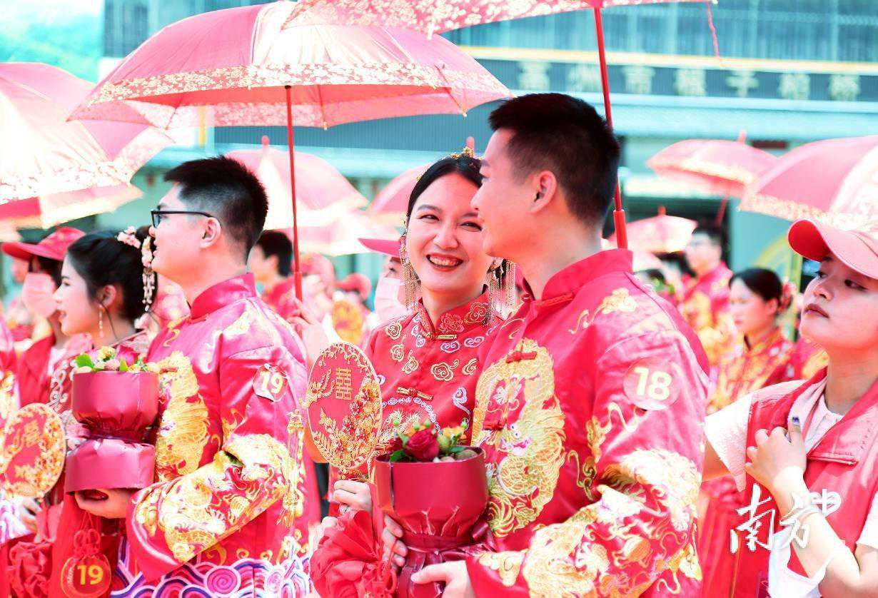 在5月20日这个具有特殊意义的日子里,茂名市“520·我爱荔”集体婚礼再次甜蜜出圈。52对新人在高州市根子镇柏桥荔枝广场举办新中式婚礼,以荔为媒,成婚以礼,见信于宾。