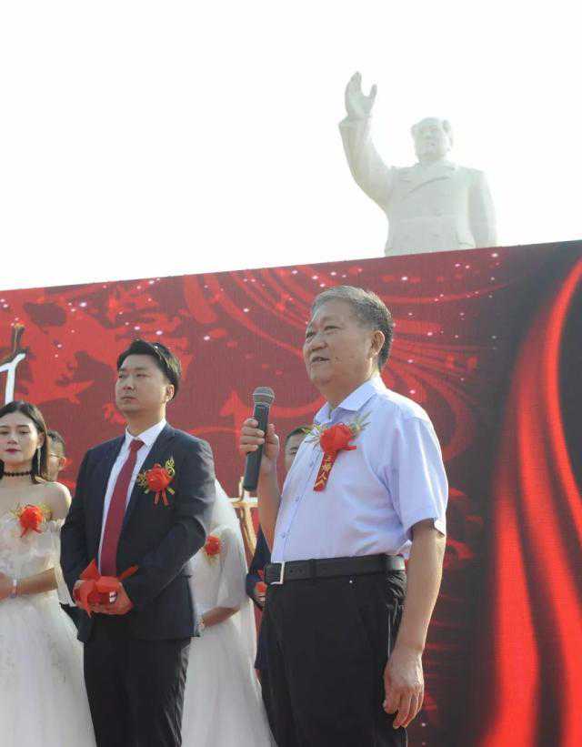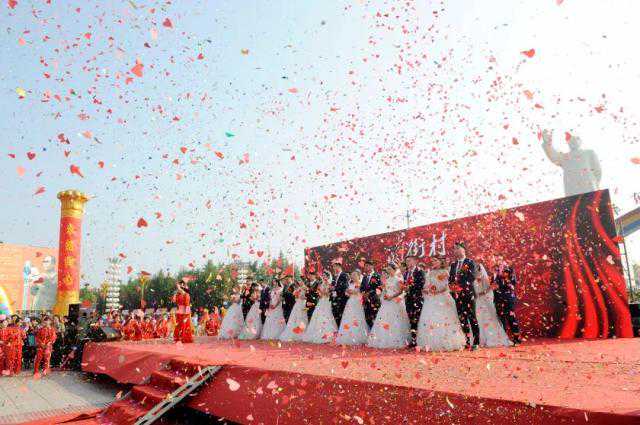 南街村党委书记王宏斌发表讲话说,今天是新中国的生日,举国上下都在热烈欢庆。今天这16对新人是南街村的新一代,是南街村的接班人,是南街村的希望,也是祖国的未来。