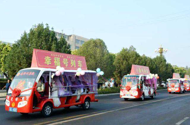 仪式在新郎新娘放飞希望、放飞梦想中结束。仪式开始前,新郎新娘乘坐经过精心装扮的游览观光车到县城进行了巡游。